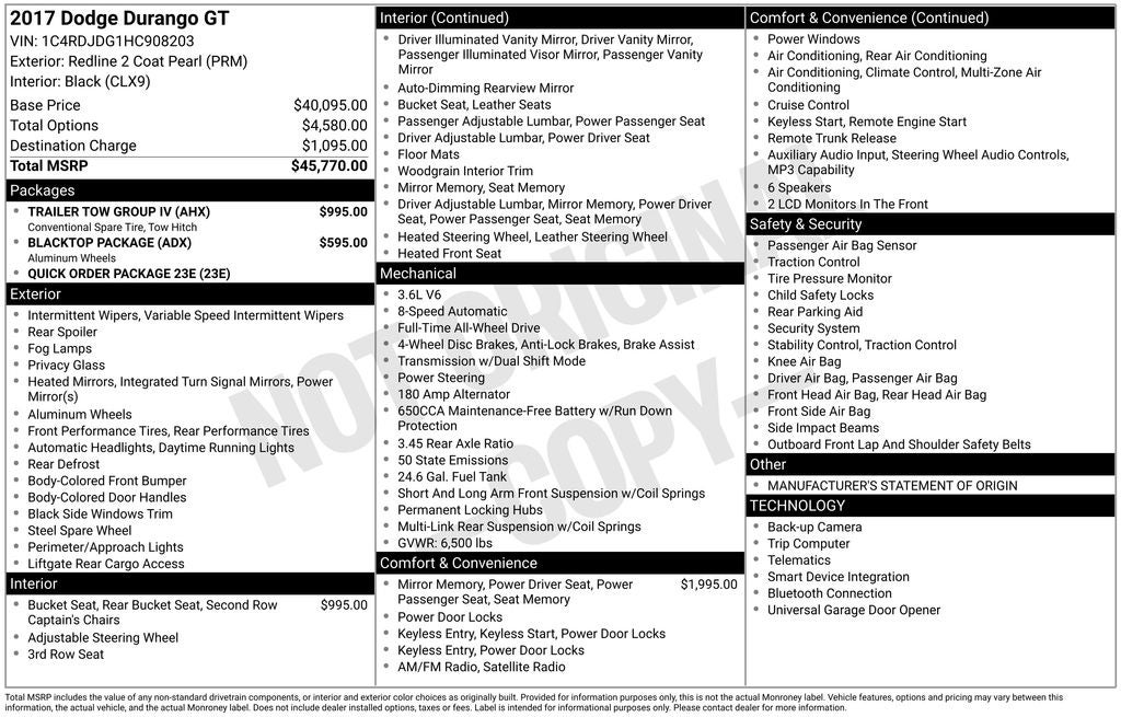 Redline 2 Coat Pearl 2017 Dodge Durango GT Recent Arrival! 7 & 4 Pin Wiring Harness, Blacktop Package, Class IV Receiver Hitch, Gloss Black Badges, Gloss Black Exterior Mirrors, Gloss Black Grille, GT Gloss Black Badging, Heavy-Duty Engine Cooling, Quick Order Package 23E, Rear Load Leveling Suspension, Trailer Tow Group IV, Wheels: 20 x 8.0 Gloss Black Aluminum. Remember Rouen He'll Deal