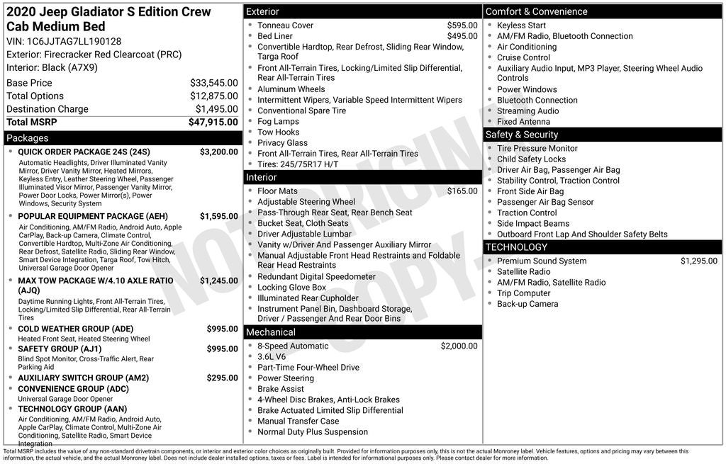 - Vehicle Name: Jeep Gladiator