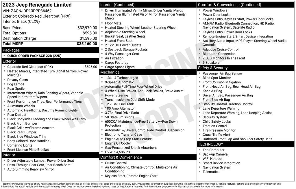 Colorado Red Clearcoat 2023 Jeep Renegade Limited Recent Arrival! Certified. CARFAX One-Owner. Clean CARFAX. 23/29 City/Highway MPG Leather, Heated Seats, Navigation System, Touchscreen Controls, Backup Camera, Automatic Headlights, Voice Recognition, Bluetooth® Hands-Free, Remote start, Aluminum Wheels, Luggage Rack, Quick Order Package 22D. Remember Rouen He'll Deal